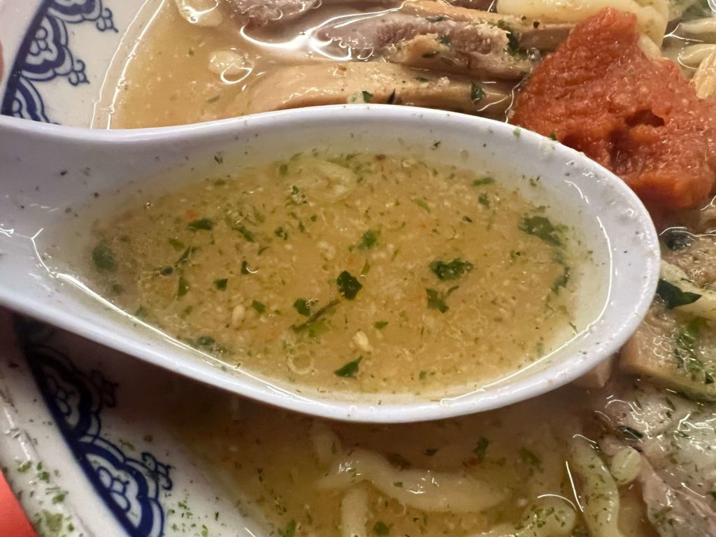 まずは辛味噌を溶かさず、スープの味をそのまま楽しみます。