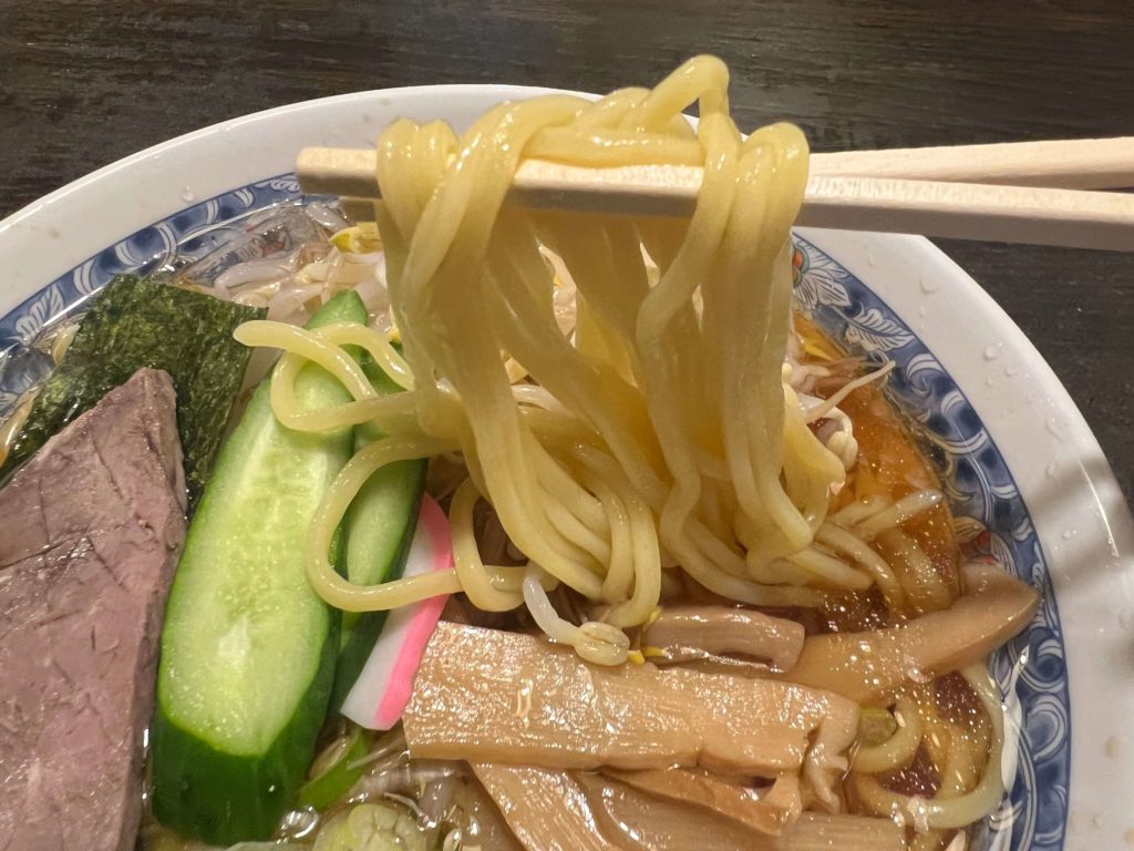 冷やしラーメンの特徴として、この麺の食感の良さは外せないポイントです。