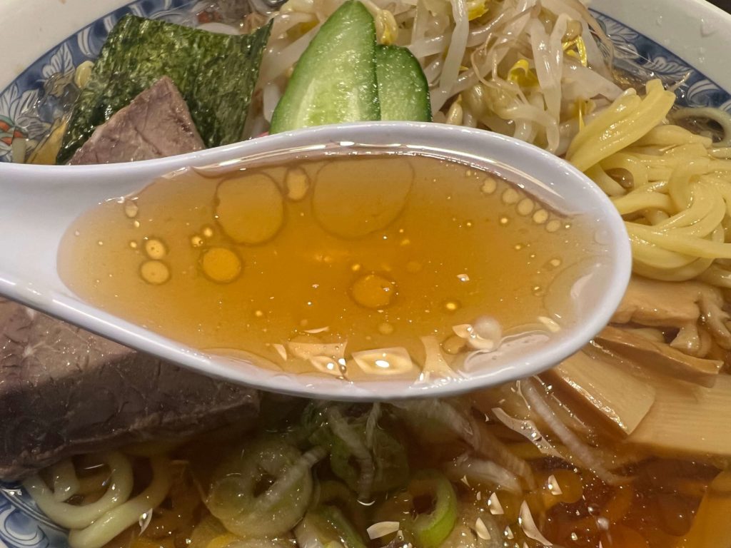 醤油ベースの澄んだスープは、冷たいのにコクがしっかりあって、後味がスッキリ。